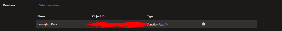 On the next screen, select Managed Identity > Select Members and choose your Application from the right hand panel (based on the application type - Functions, App Service etc..). Make sure you select the correct instance of your resource where you deployed our code/are going to be deploying code to. In this case I am choosing Functions and selecting/searching for my target Function app: