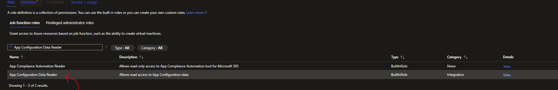 Select "App Configuration Data Reader" here and then click Next.