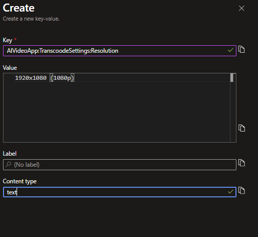 Console.WriteLine(config["AIVideoApp:TranscoodeSettings:Resolution"]);Access Azure App Configuration