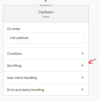 Next, go back into the Scenes > ClipSelect and then add a Slot Filling: