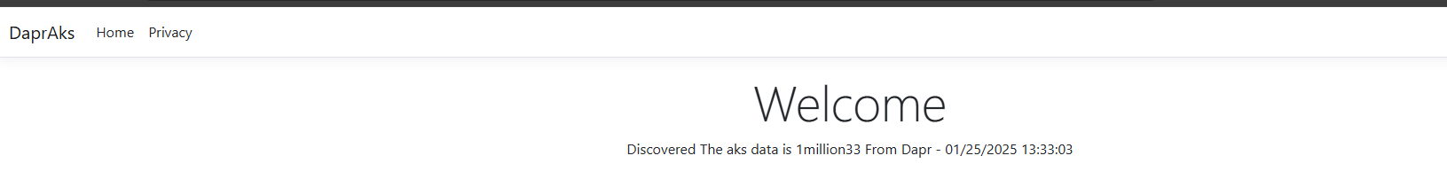 SecretData = "The aks data is " + secret["ContextLength"] + $" From Dapr - {DateTime.UtcNow}"