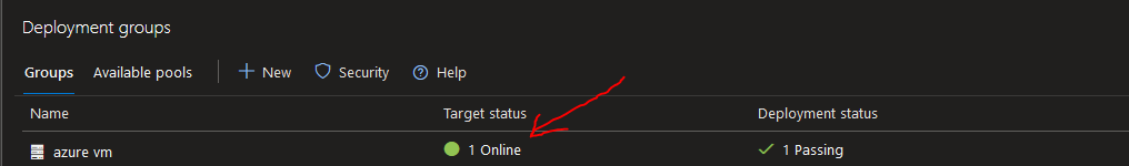 This Windows Service must always be running or set to run upon Server restarts to avoid disruptions in the pipeline. Once the service is verified to be running, you can check back in your Deployment Groups Section in Azure Devops to make sure sure the machine is marked as online in Devops (Refresh the page if not yet online). Here is mine:
