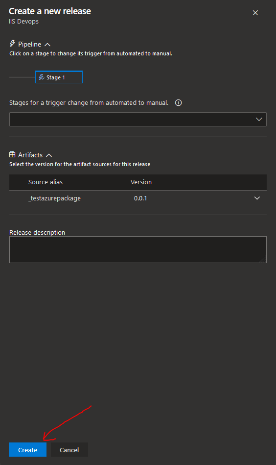 Then click 'Create Release' , Set a release comment if you wish and click Create: