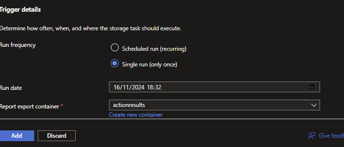The Azure Storage Action will have its own resource in a specific region, and therefore your target storage account where your blobs live must be in the same region for this to work properly, there is no support for the Storage Action being able to manipulate data in a storage account in a different region (yes I was confused for a while myself๐ค). At the time of writing, Azure Storage Actions are in preview.