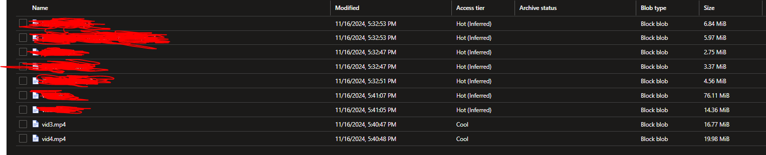 And sure enough, when we observe the 2 updated files, their Access tier has been changed to Cool where they were initially uploaded as Hot: